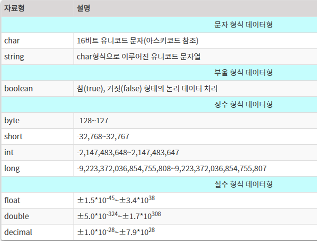 문자형은 String, 문자실수형으로는 BigDecimal이 있다. 특이점은 원시형 데이터 타입은 소문자로 시작하지만 클래스형은 모두 대문자로 시작한다.