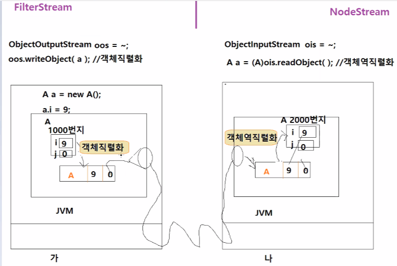ObjectOutputStream oos = new ObjectOutputStream(바이트출력스트림);
