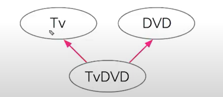 Tv와 DVD 의 메서드가 void power() 로 같고 내용이 다르다고 할 때 TvDVD가 상속받을 때 충돌이 일어난다.
