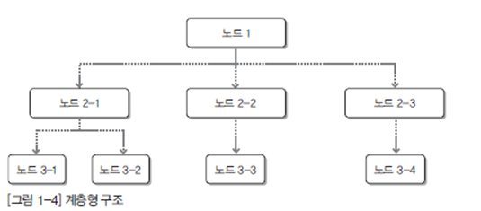 - 처음으로 나온 DBMS 개념으로 1960년대에 시작되었음. 각 계층은 트리형태를 가지며, 1:N 관계를 갖는다