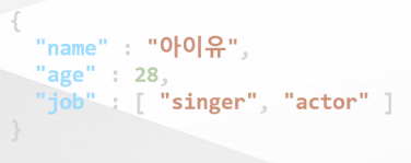 JSON 🠆 대부분의 웹 서비스에서 가장 많이 사용하는 데이터 포맷