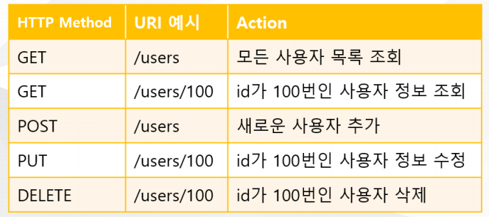 HTTP Method로 표현 🠆 GET, POST, PUT, DELETE 등