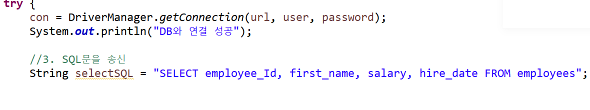int sal = rs.getInt(3); // db인덱스는 1부터 시작한다. jdbc는 db인덱스를 그대로 사용해야한다. 3은 앞서 그림에서 보듯이 인덱스3을 의미