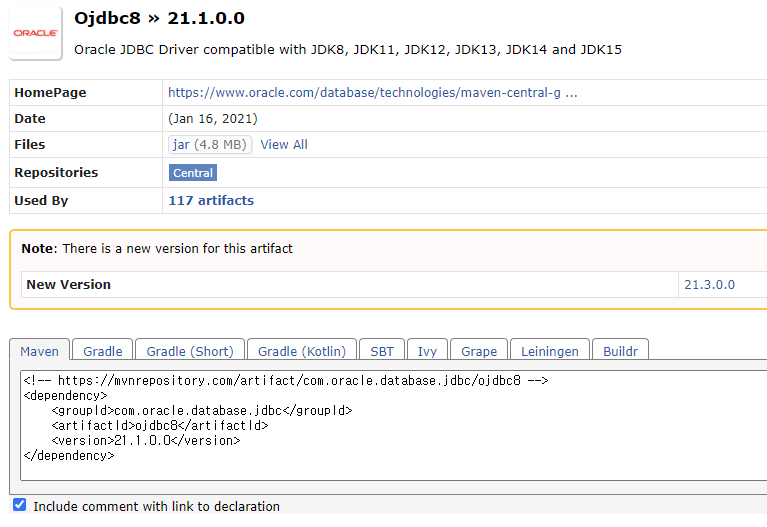 https://mvnrepository.com/artifact/com.oracle.database.jdbc/ojdbc8/21.1.0.0