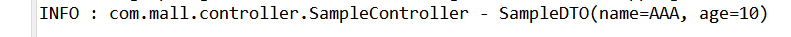 console 창에서 아래와 같이 값이 나타난다. SampelDTO 객체 안에 name과 age 속성이 수집된 것을 볼 수 있다. 그리고 자동으로 타입을 변환해서 처리한다.
