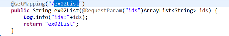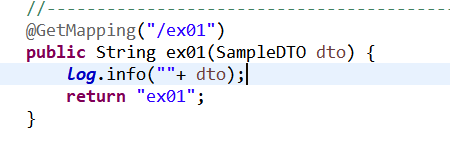 ex02() 메서드는 파라미터에 @RequestParam 어노테이션을 사용해서 작성되었다.