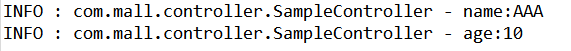 console 창에서 아래와 같이 값이 나타난다. SampelDTO 객체 안에 name과 age 속성이 수집된 것을 볼 수 있다. 그리고 자동으로 타입을 변환해서 처리한다.