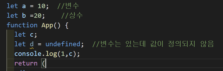 let d의 변수에 정의한 undefined 와 같은 출력결과를 볼 수 있다. undefined 는 변수는 있는데 값이 정의 되지 않은 것이다.