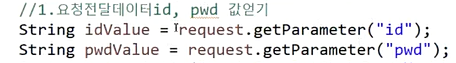 ▶ 이렇게 전달하는 이유 아래의 코드를 보면 서블릿에서 request.getParameter로 받아와야하는데 ajax 바꾸기 때문에 정확히 값을 찾아오게 끔 해야한다. 정확한 값을 찾아오면 그 값을 전송데이터로 사용해서 request.getParameter의 값으로 사용을 한다.
