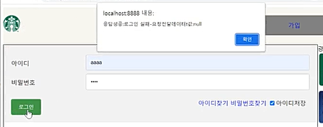 아이디와 비밀번호를 입력하고 로그인을 하였을 때 기존의 화면결과가 지워지지 않고 alert 창이 보여진다.