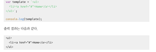 일반 문자열과 달리 템플릿 리터럴내에서는 줄바꿈이 허용되며, 모든 공백도 있는 그대로 적용된다.