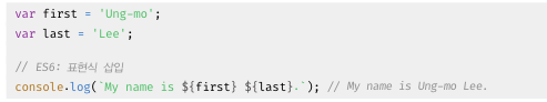ES6부터 템플릿리터럴 이라고 하는 새로운 문자열 표기법이 도입되었다. 일반적인 작은따옴표, 큰따옴표 말고 백틱을 사용해서 표현한다.