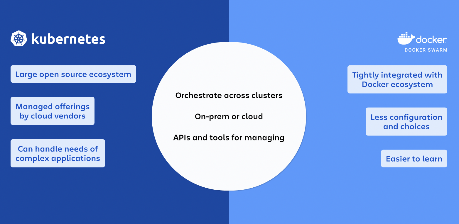 쿠버네티스와 도커 스웜클러스터에서 우위 싸움에서 쿠버네티스가 승자가 되었으며, 도커 스웜은 쿠버네티스에 합쳐지게 되었다. 도커 스웜 마스터노드는 최종 인수되었다고 알고 있다. 또한 버전도 더 이상 나오지 않으며 현재 버전이 최종버전이다. ( 최종 버전 = 안정적인 버전 ) 그래서 현재 문서만 보아도 쿠버네티스에 대한 문서들은 굉장히 많지만 도커 스웜에 대한 문서들은 거의 없다. 그렇지만 도커 스웜 클러스터는 중견기업, 대기업까지도 충분히 사용할 수 있는 오케스트레이션 도구이다.