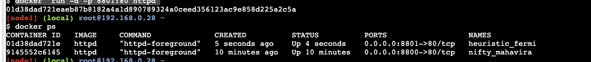 4. 포트 80이 각 컨테이너 내부의 포트인 것을 알 수 있다. 컨테이너를 도청하는 것처럼 가상 네트워크 안에서만 엑세스가 가능하다.
