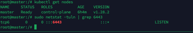 아래의 명령어로 현재 시스템에서 6443 포트를 사용하는지 여부를 체크한다.