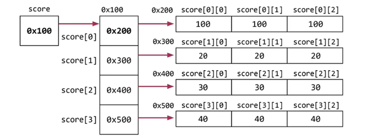 score[0][0] = 100; //배열 score의 1행 1열에 100을 저장