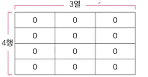 4행 3열에 인덱스가 자동으로 붙는데 행인덱스의 범위는 4인경우에 0부터 4-1인 3까지이며