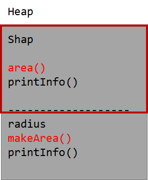 그림으로 메모리를 경로를 보면 Shap 클래스 안에 area()메서드로 이동하는 것을 알 수 있다.