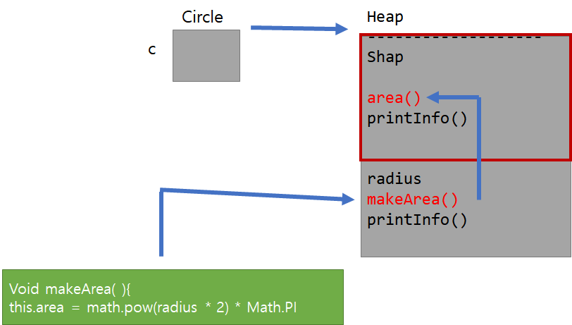 그림으로 메모리를 경로를 보면 Shap 클래스 안에 area()메서드로 이동하는 것을 알 수 있다.