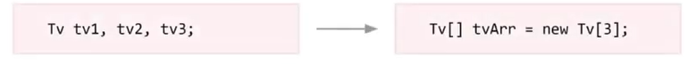TV 데이터타입의 참조변수를 오른쪽과 같이 참조 변수 배열로 나타낼 수 있다.